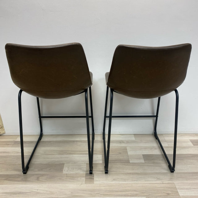 Counter Height Solid Brown Faux Leather Stool - Set of 2