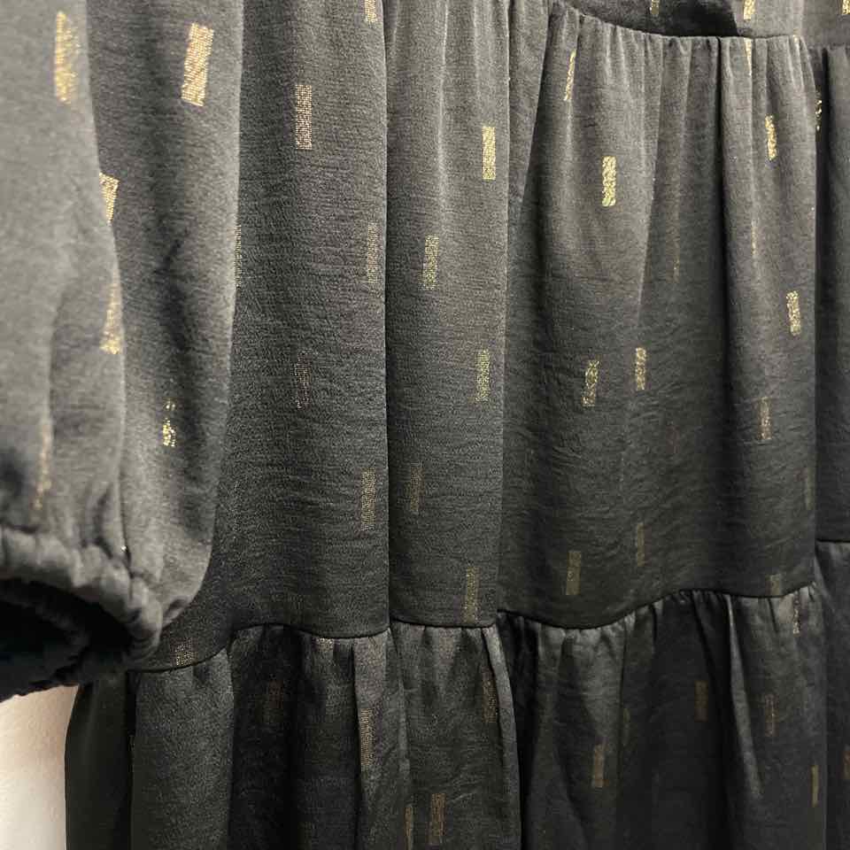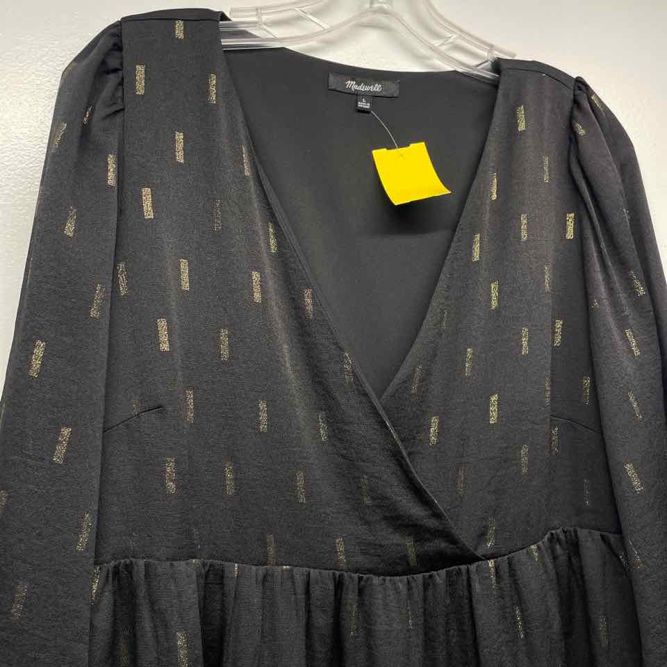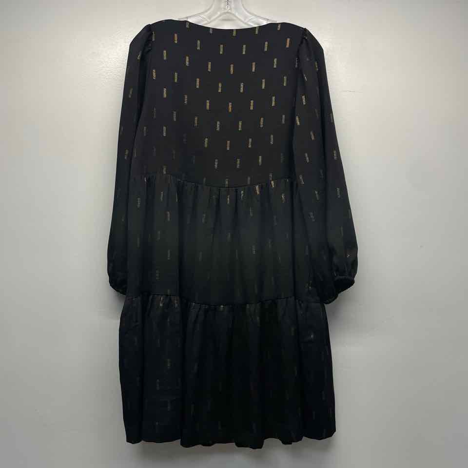 Madewell Size L Women's Black-Gold Pattern Fit And Flare Dress