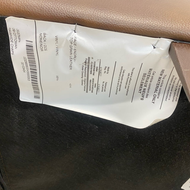 17"H x 26" x 33.5" Top cushion is leather, base is faux leather