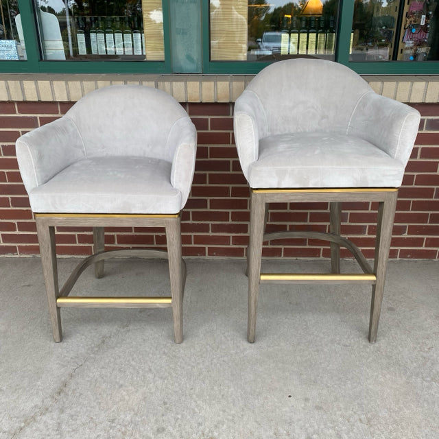 Frontgate Swivel Gray Velvet Bar Height Solid Stool