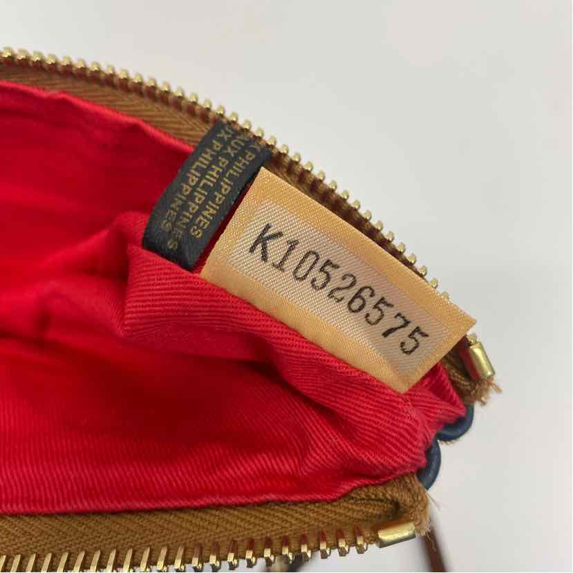 8 1/4" W x 5 3/4" H x adjustable strap magnet/ Zipper folding closure. Red lining. front credit card slots.