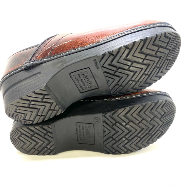 Sanitas Size 7-37 Women's Brown Patent Leather Clog Shoes