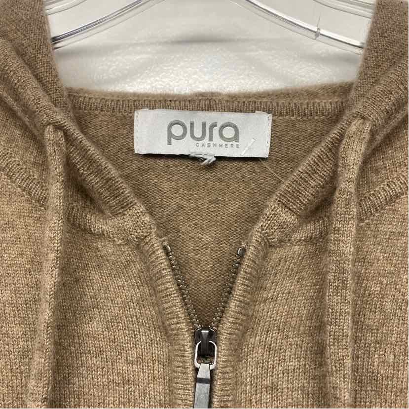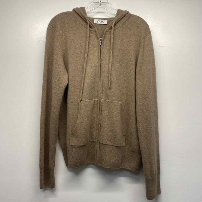 Pura Cashmere Size Xl Women's Brown Solid Hoodie Sweater