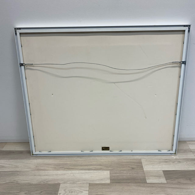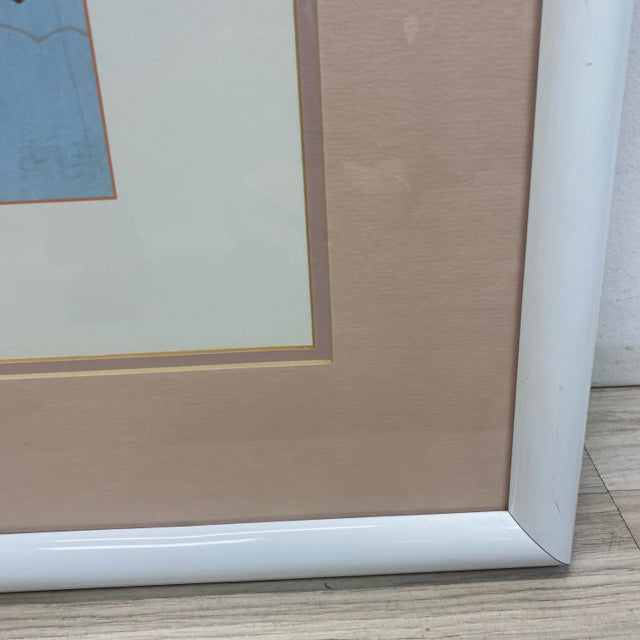 White Framed Christmas in Santa Fe by Amado Maurilio Pena Signed 37-3/8"W x 31-5/8"H