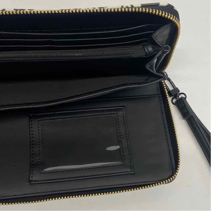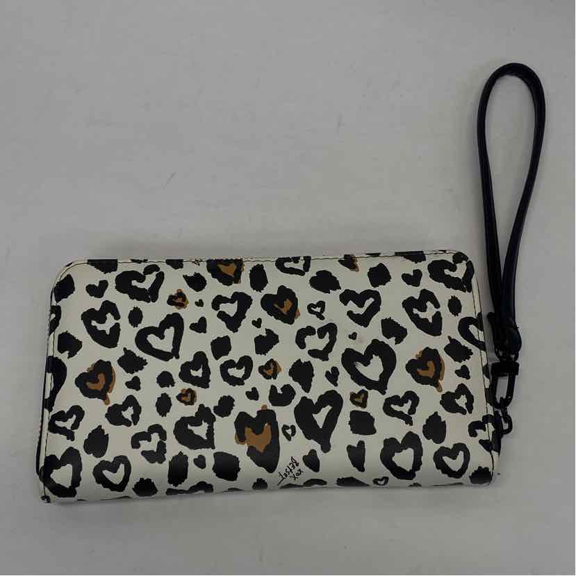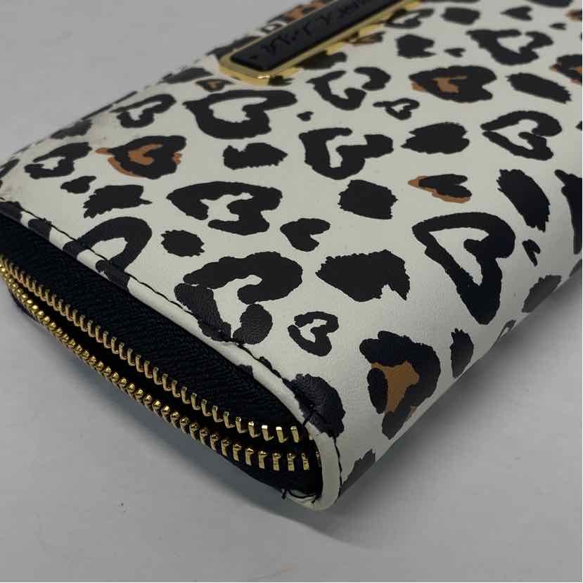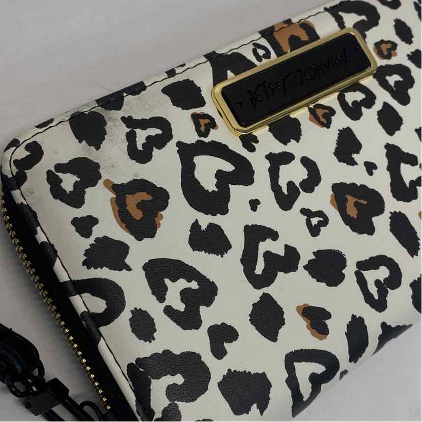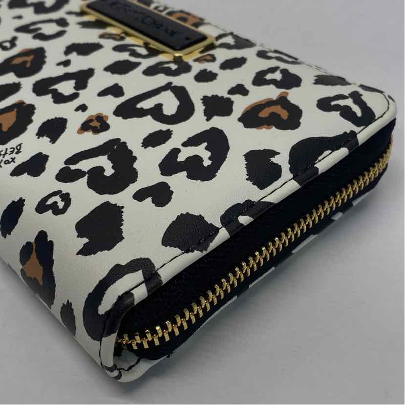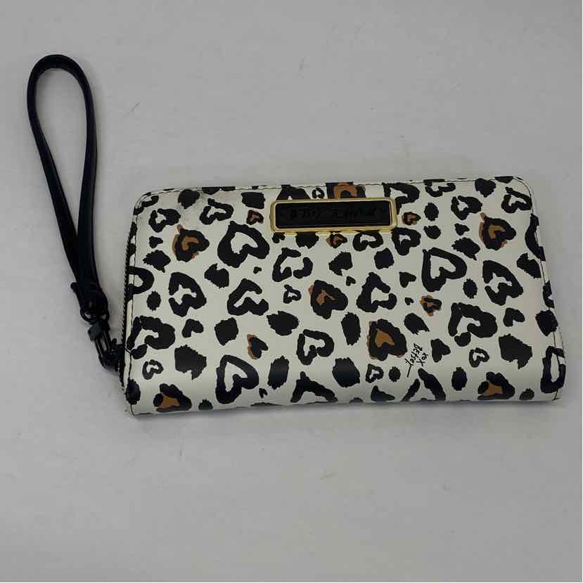 Betsey Johnson White-Black Faux Leather Hearts Zip Around Wallet