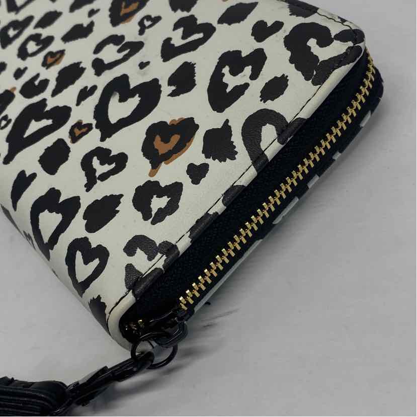 CC slots. ID window. Zip pocket. 8-1/4" x 4-3/4" Leopard heart pattern