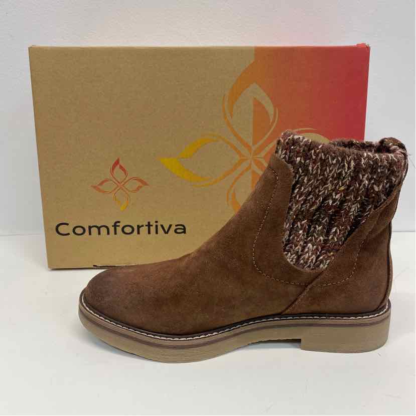 Comfortiva Size 7 Women's Brown Patchwork Ankle Booties