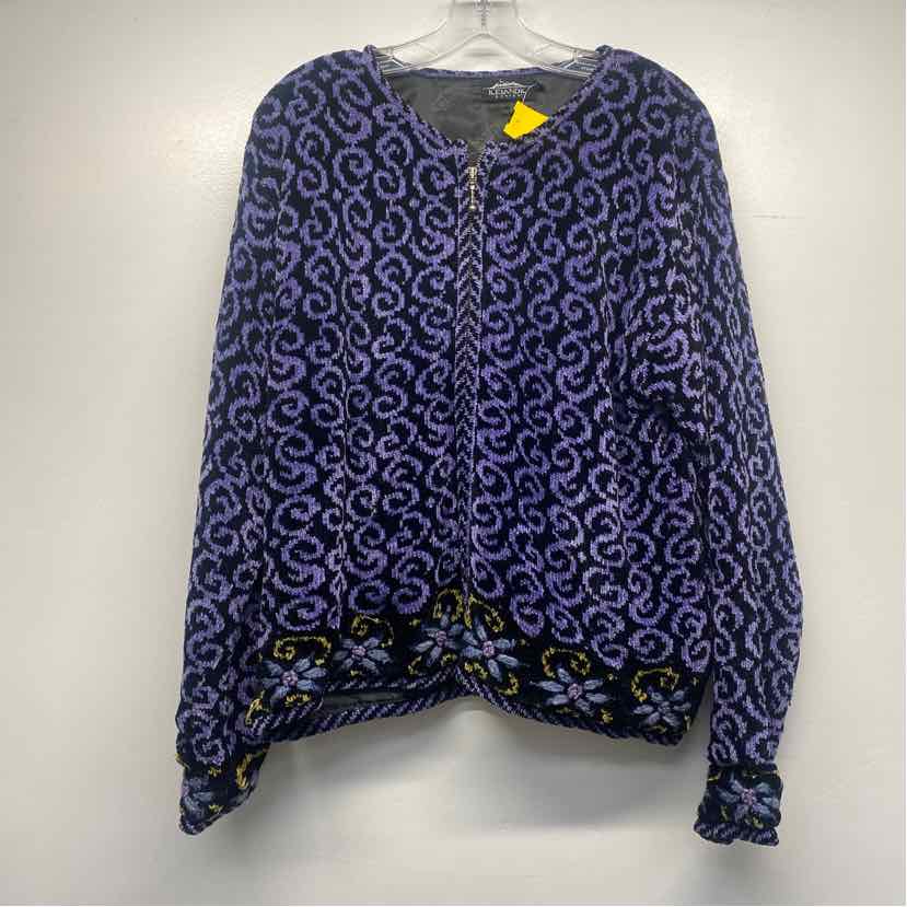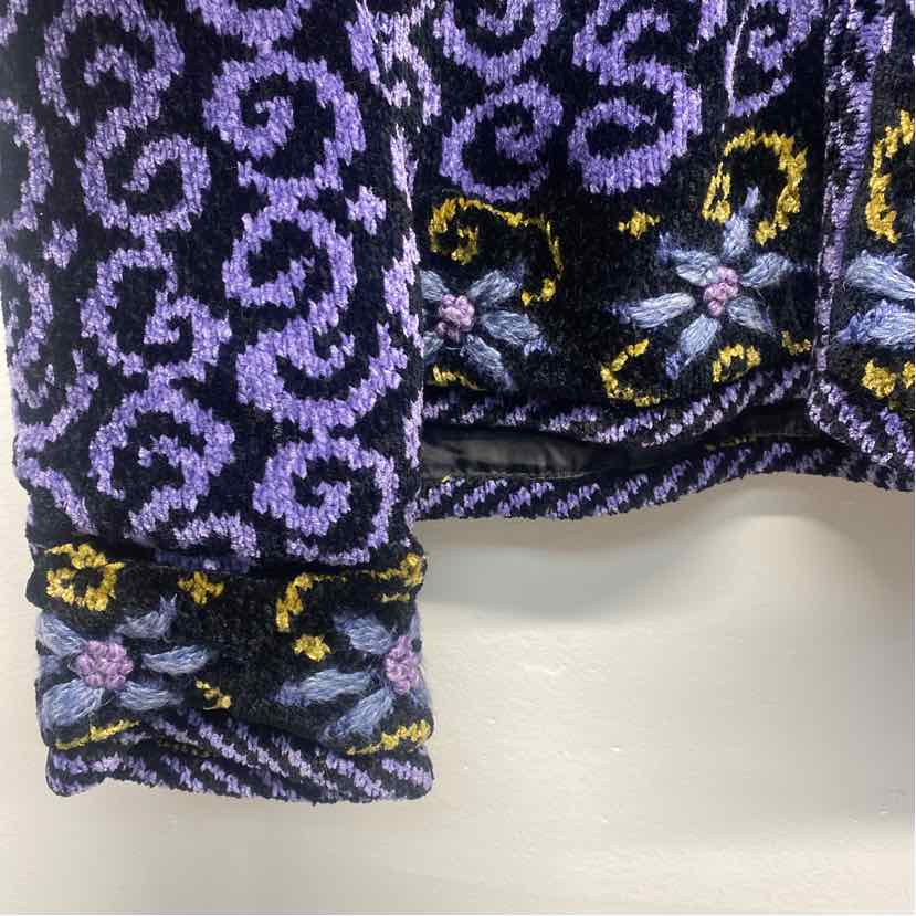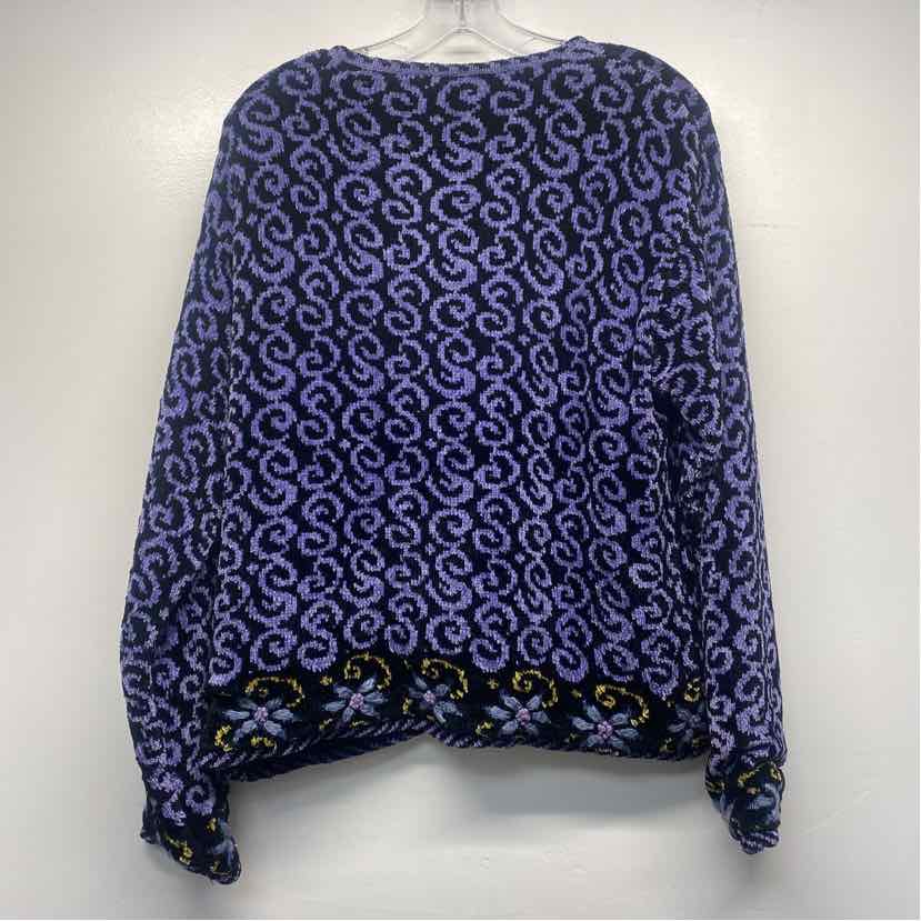 Icelandic Size L Women's Black-Purple Pattern Zip Up Sweater