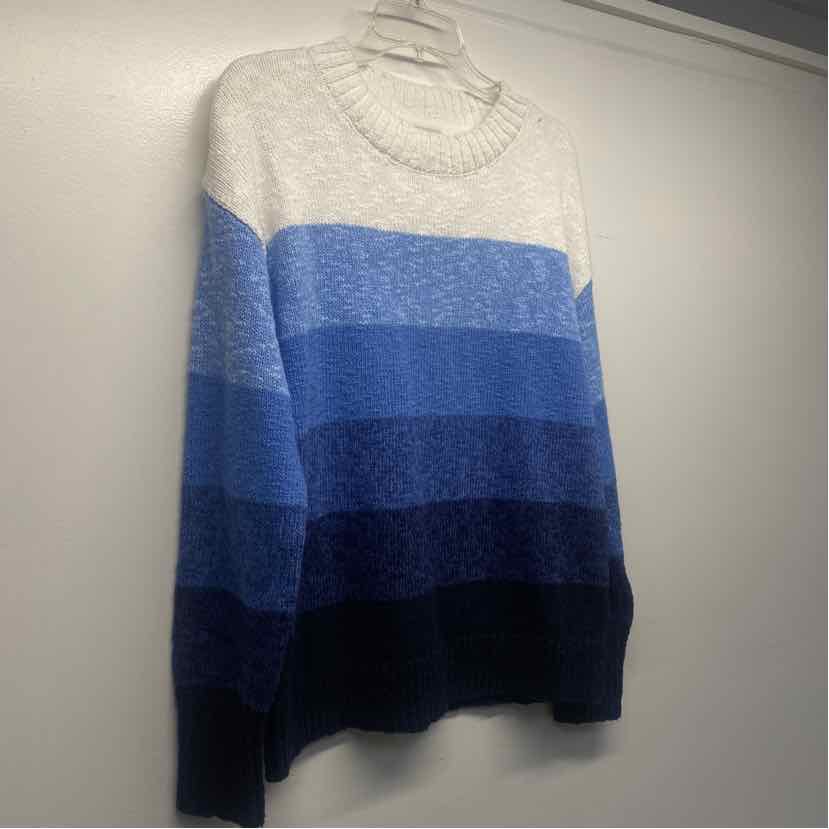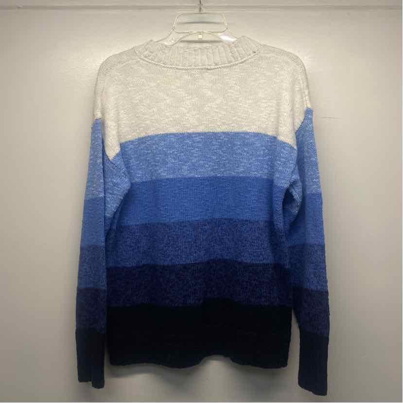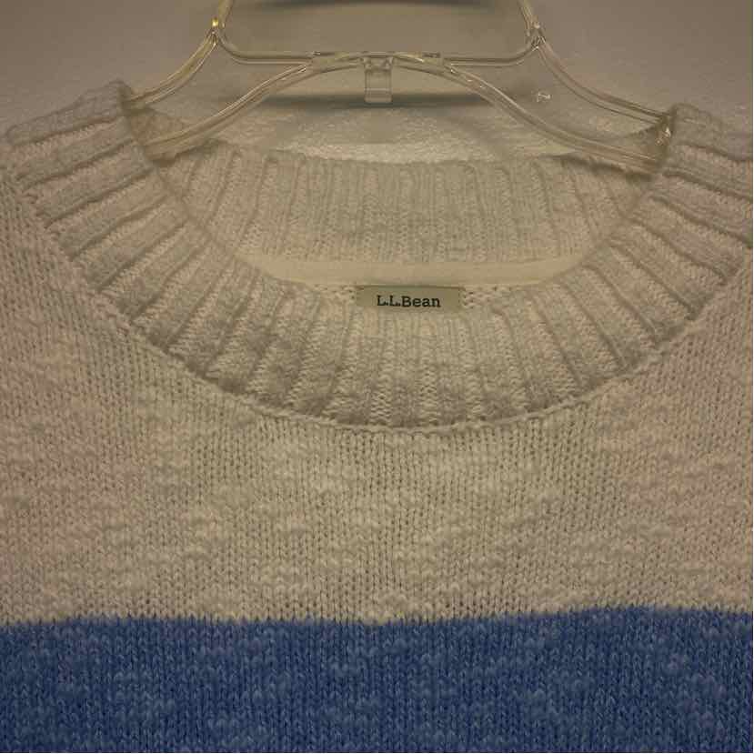 LL Bean Size L Women's Blue-White Stripe Mock Neck Pullover Sweater
