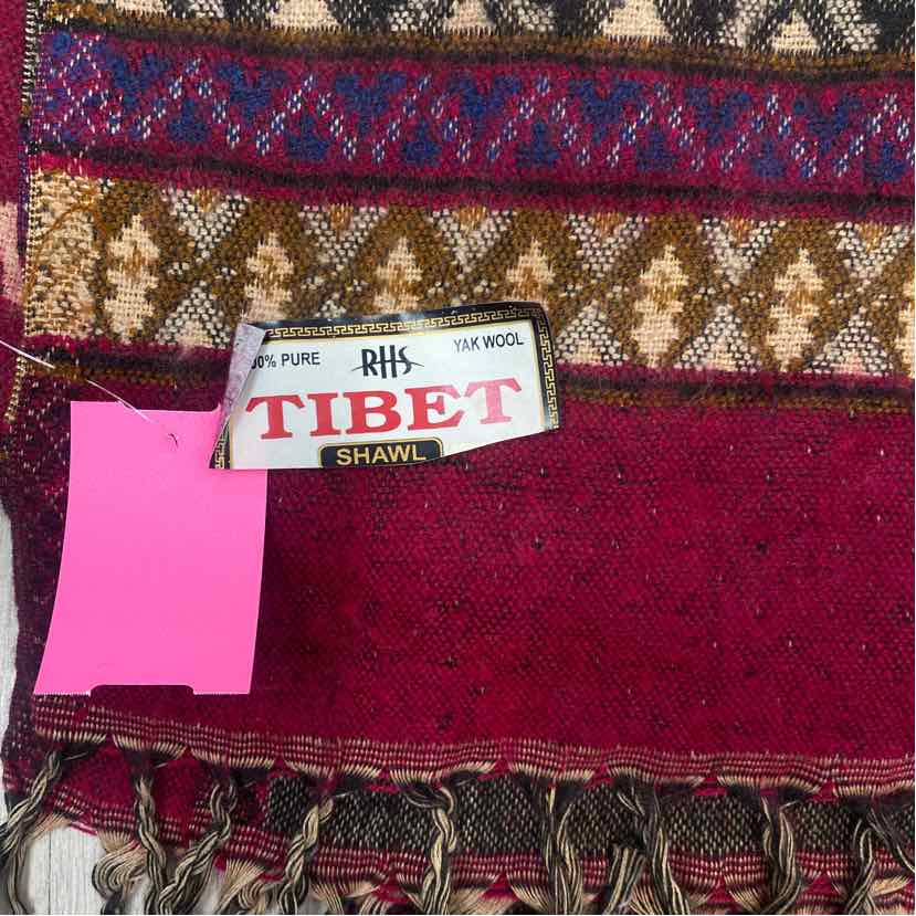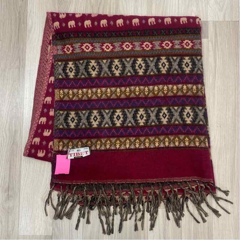 Tibet Red Yak Wool Elephants Fringed Shawl