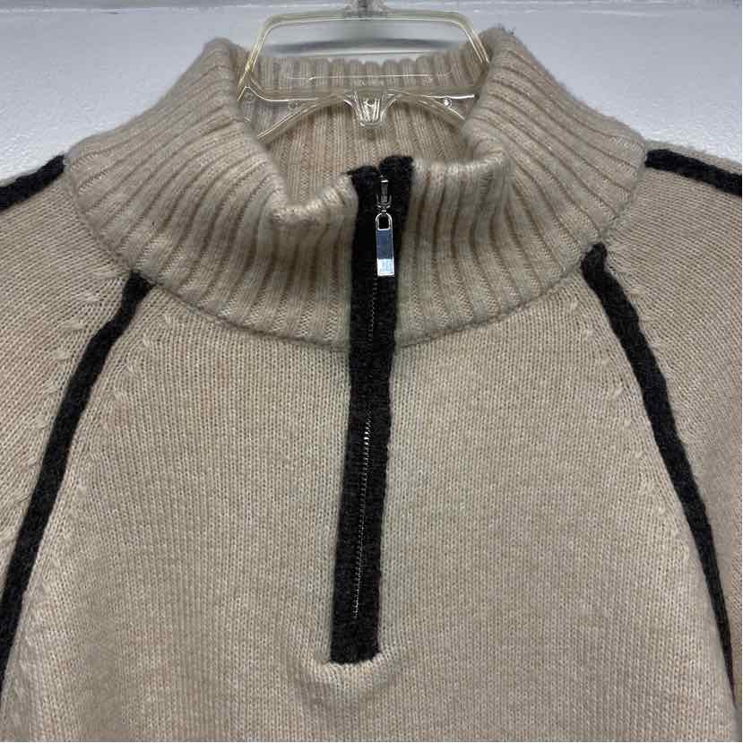 Z Supply Size M Women's Beige Stripe Zip Mock Neck Sweater
